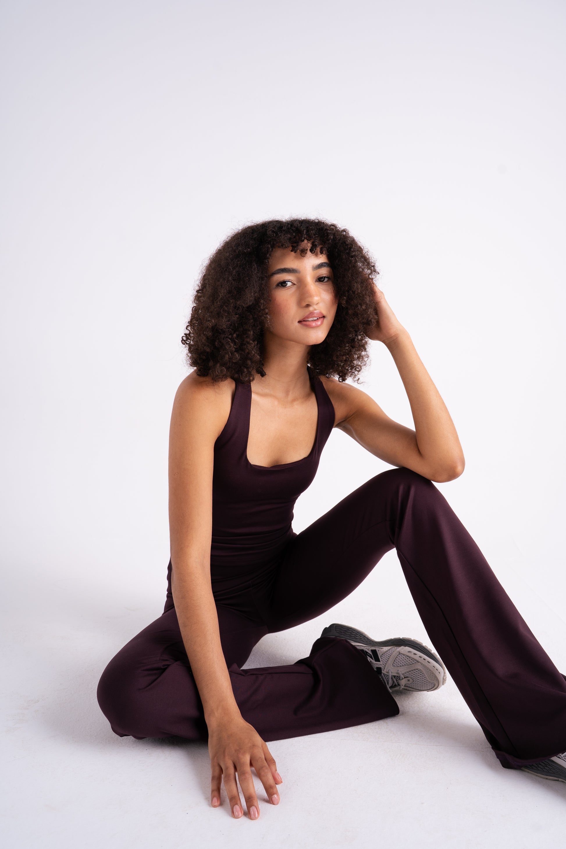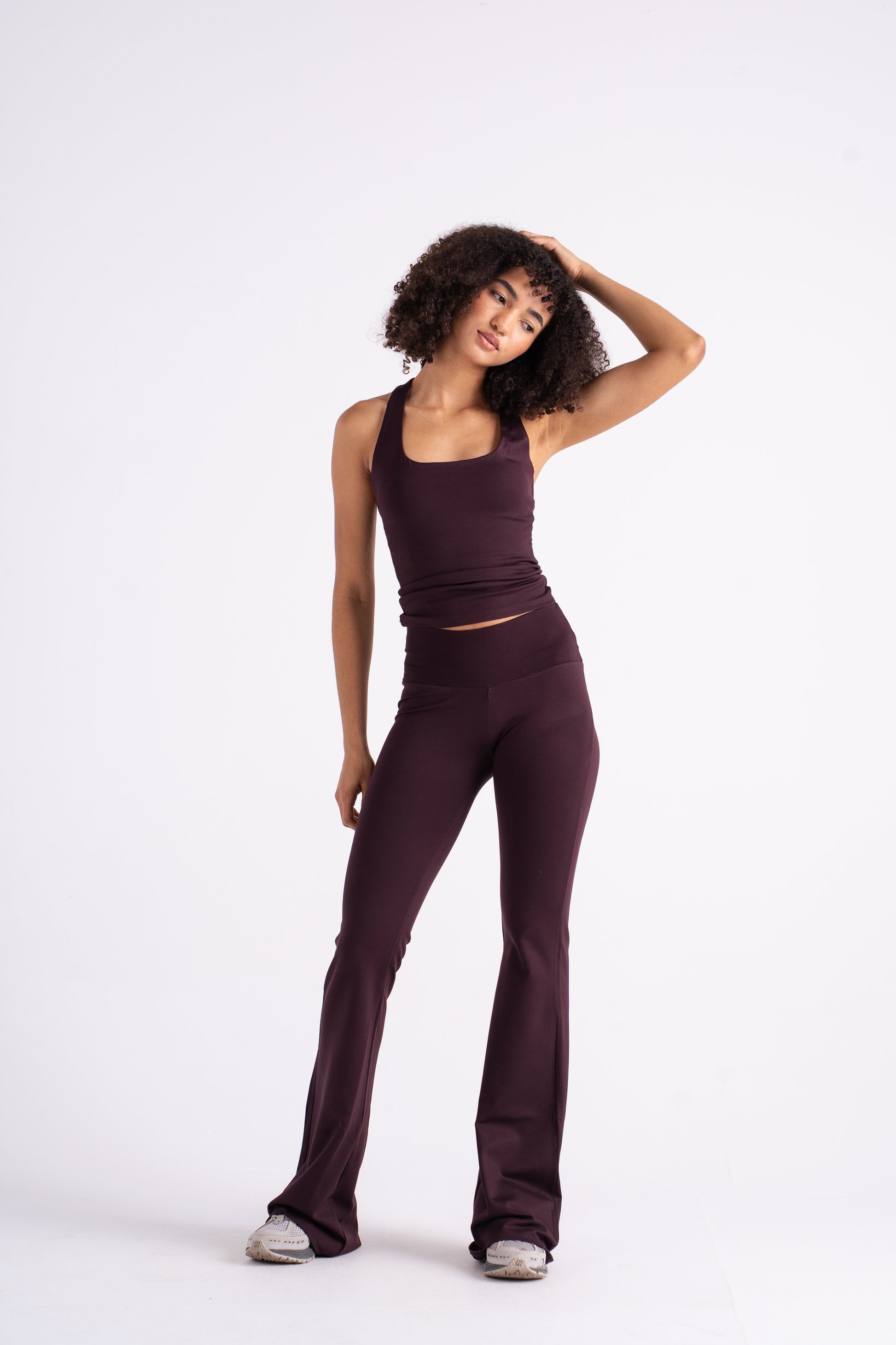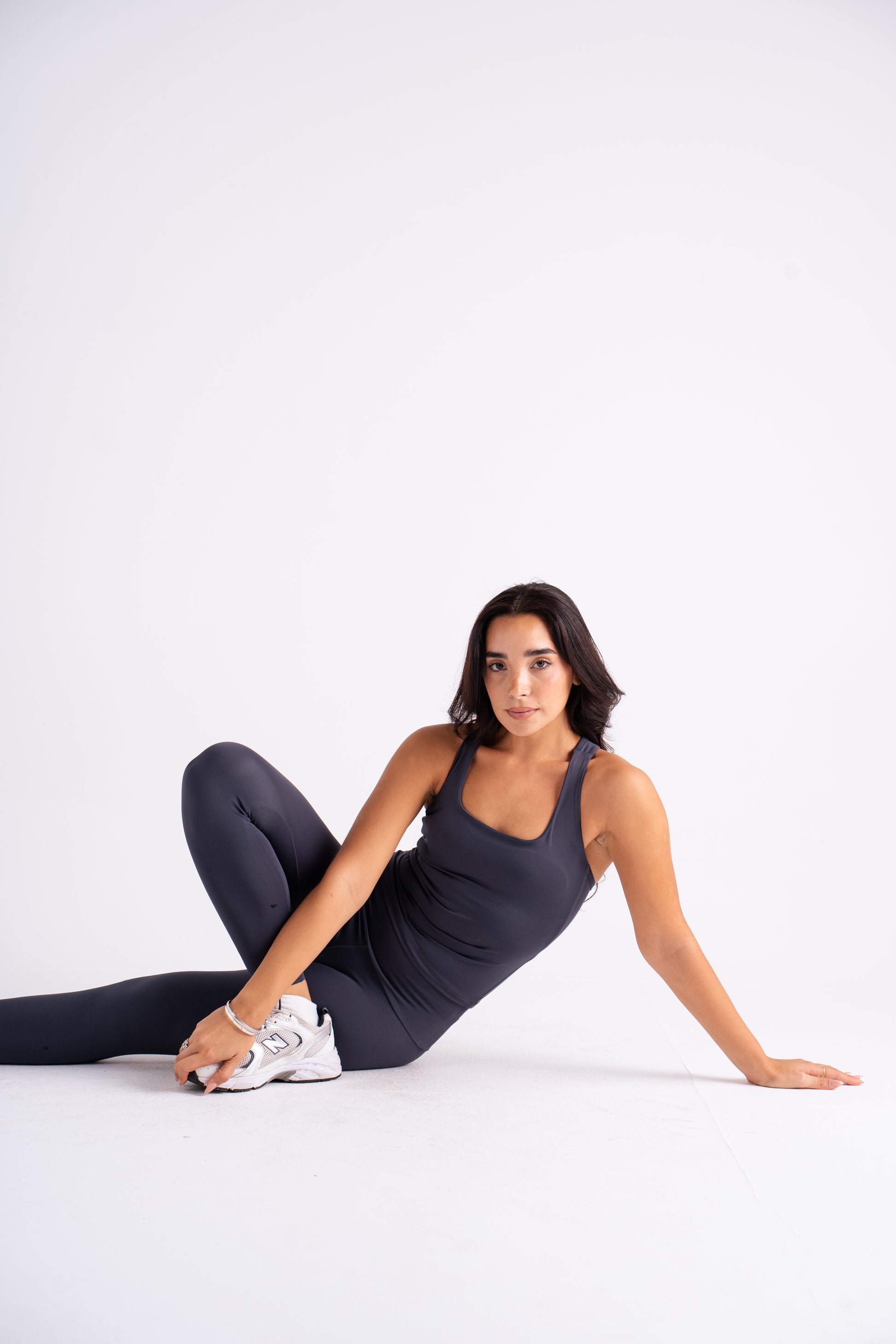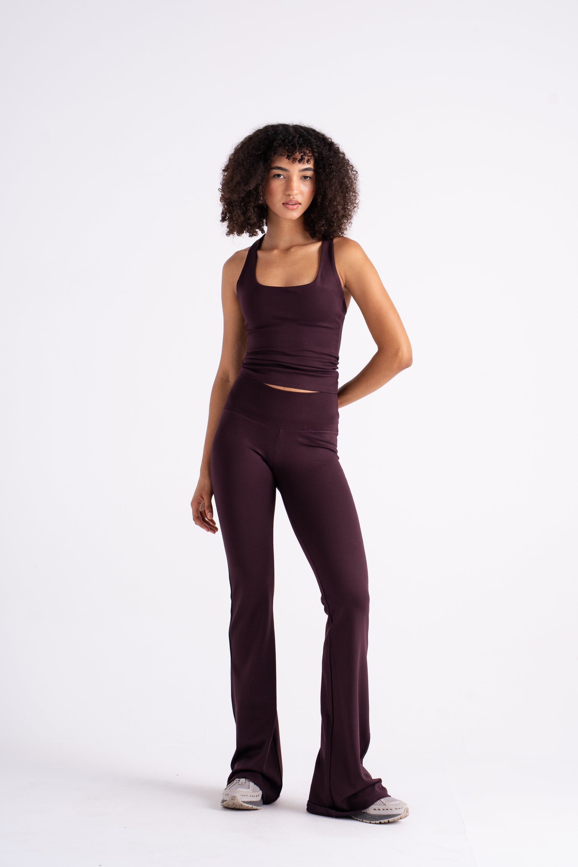 A fitted tank crafted from smooth, stretch performance fabric that shapes and moves with the body. Features a clean square neckline and wide straps for a modern, minimal silhouette that flatters while offering support. The longline cut provides coverage and versatility — perfect for workouts, layering, or pairing with flares for an off-duty look.