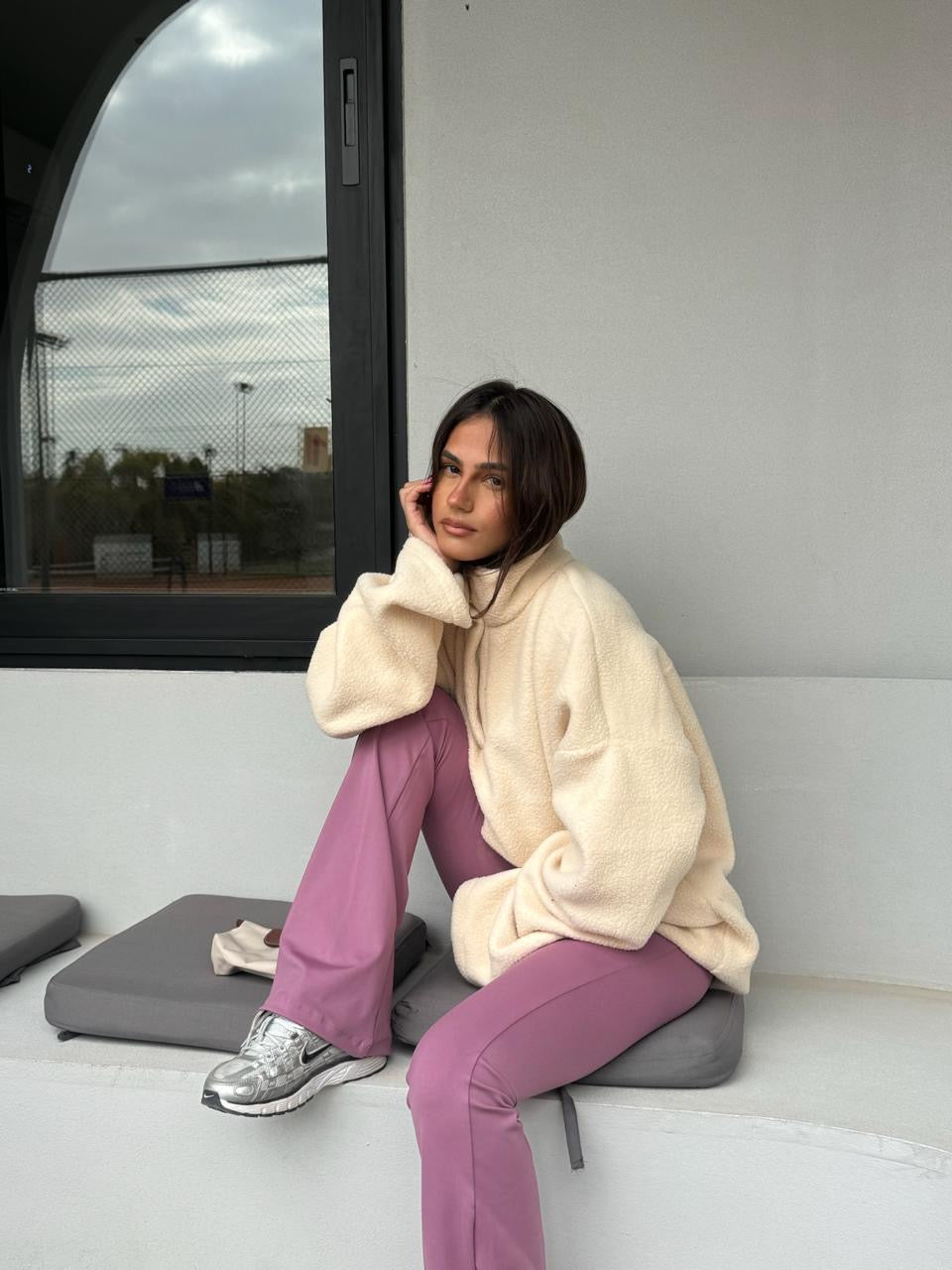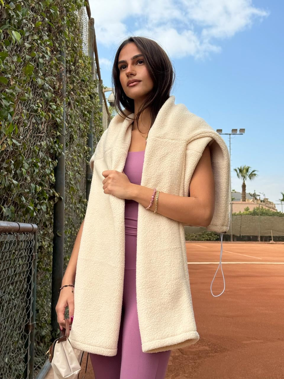 A soft sherpa zip-up crafted from plush fleece for maximum warmth and comfort. Designed with a high neck, dropped shoulders, and a slightly cropped, boxy fit for that relaxed yet polished silhouette. Finished with contrast detailing and elastic cuffs for a snug, cozy feel. Ideal for layering before workouts or weekend coffee runs.