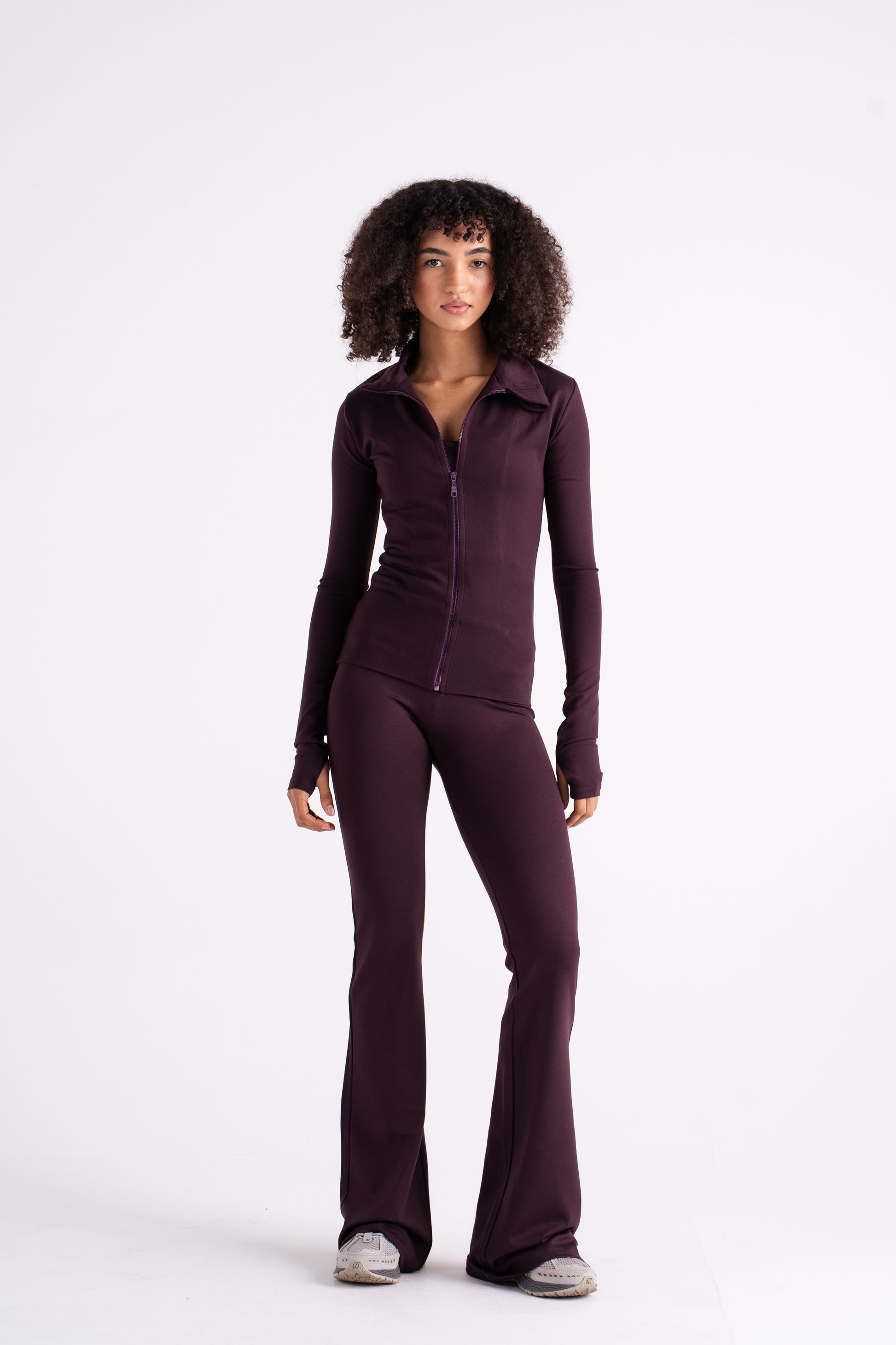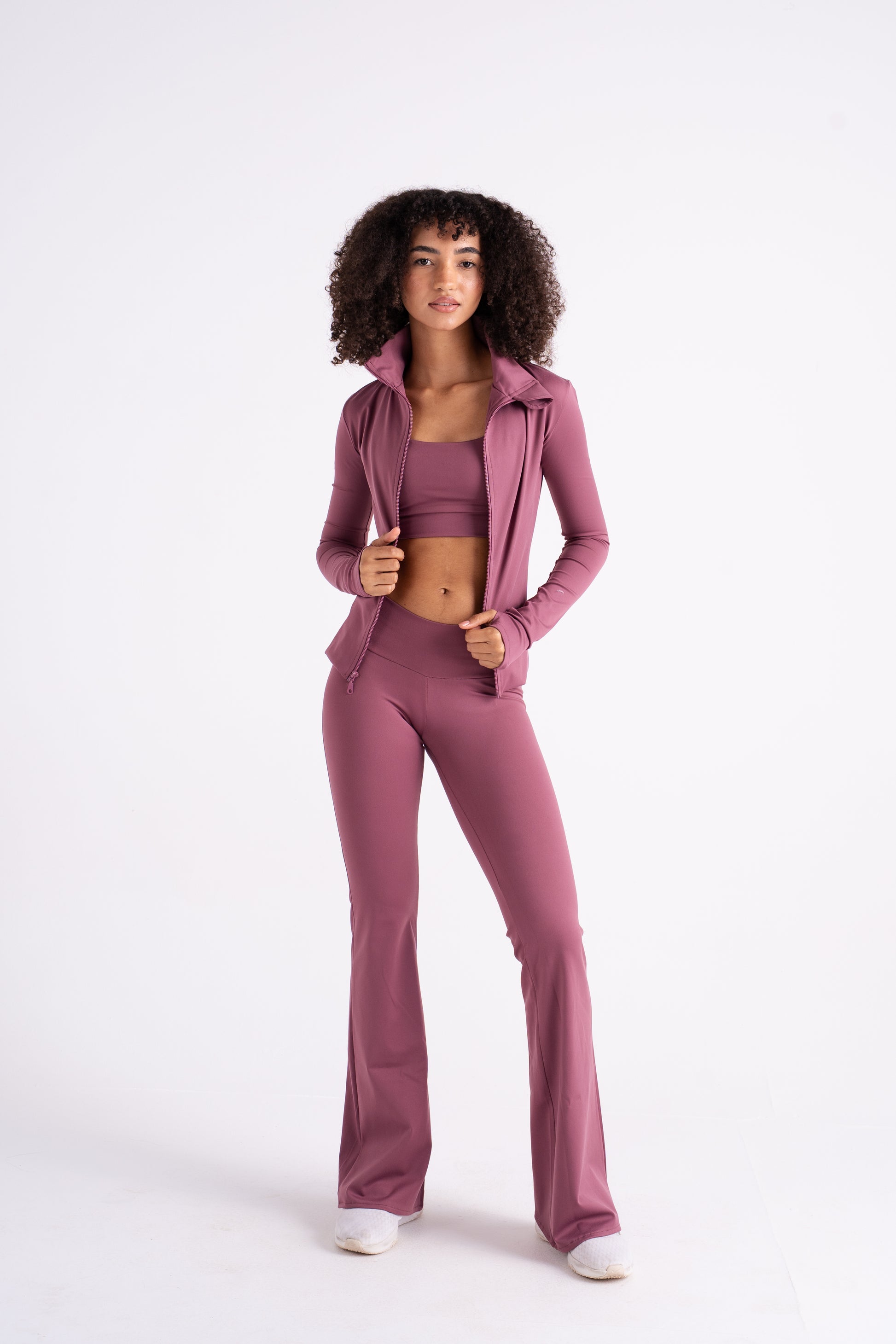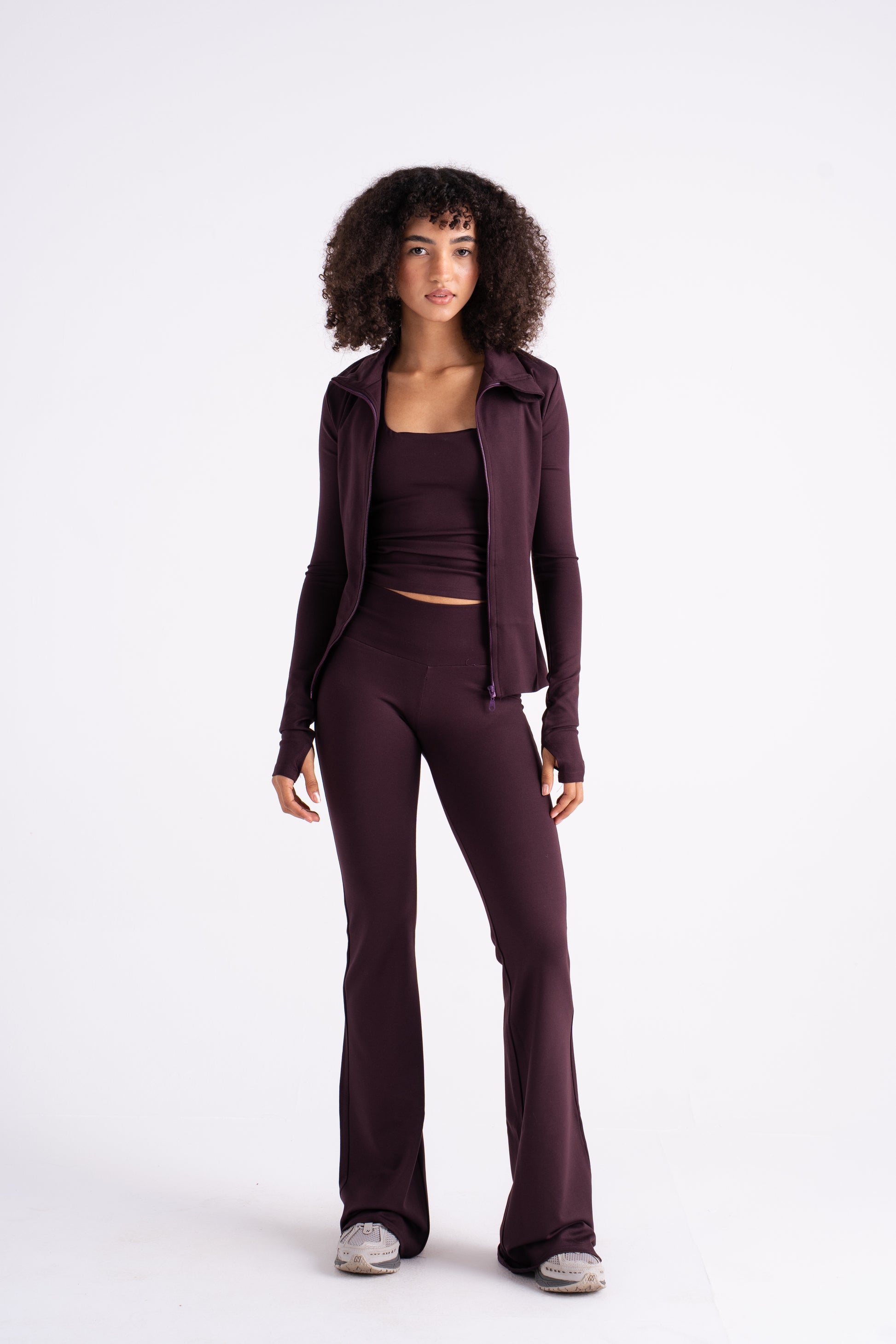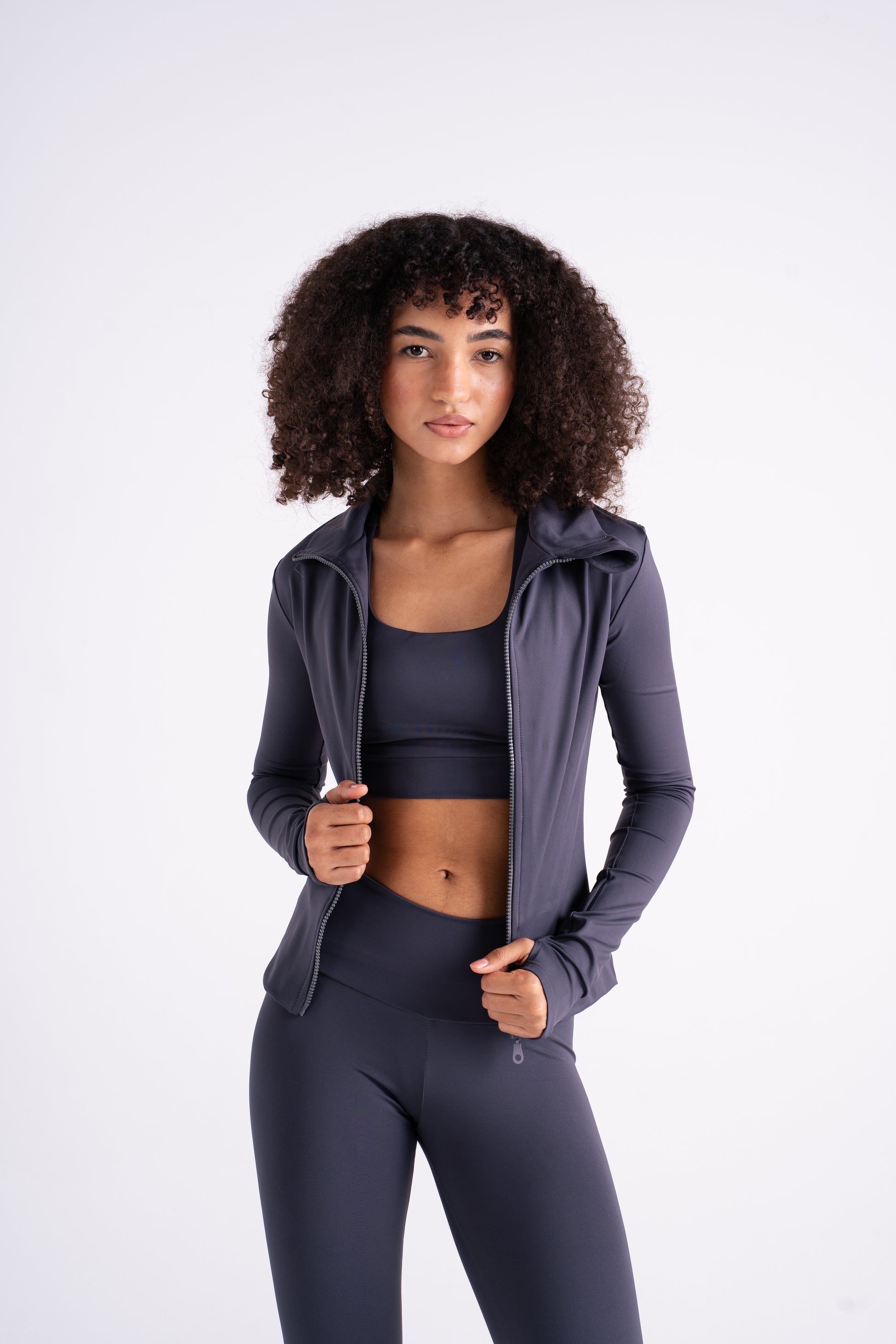 A tailored, full-zip performance jacket made from smooth, lightweight compression fabric that molds to the body while allowing total freedom of movement. Designed with a high collar, subtle contour seams, and streamlined sleeves for a sculpted, elongated look. The zip closure makes it easy to layer over bras or tanks, and the cropped length gives it a modern, flattering edge.